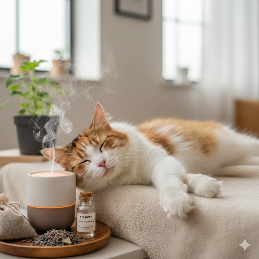 - 인공 페로몬 (펠리웨이): 향기라고 하긴 어렵지만, 엄마 고양이의 젖 주변에서 나오는 안심 페로몬을 재현한 향이에요. 이사나 합사 시 불안감을 줄이는 데 가장 효과적이에요.