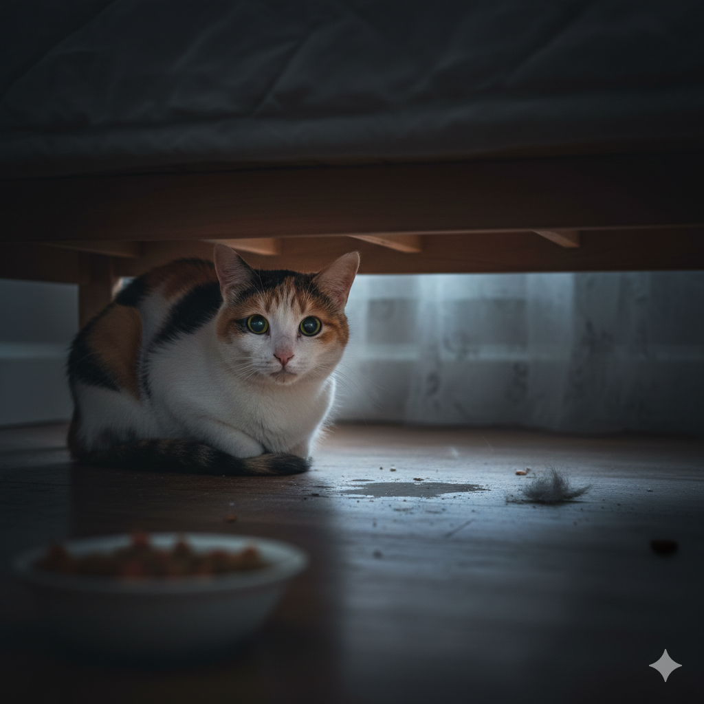• 숨어 지내기: 구석진 곳이나 침대 밑에서 잘 나오지 않아요.